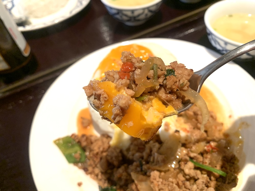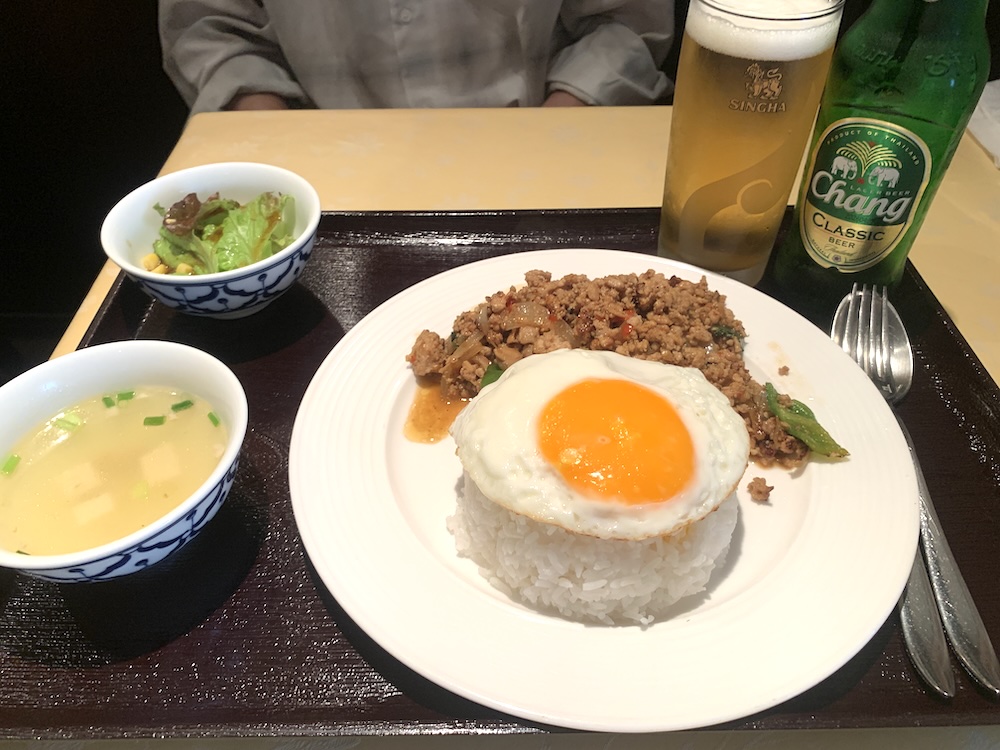 タイ料理では定番、ひき肉とバジルのタイ風炒めご飯です。